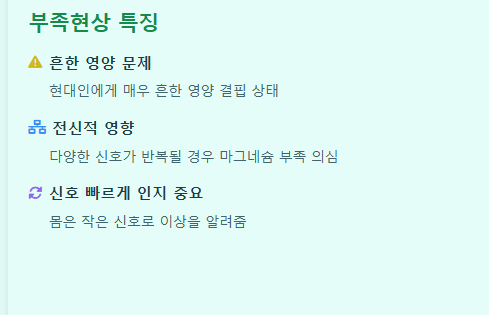 사소한 근육 경련이나 피로감, 두통, 불면이 단순한 나이 탓이나 스트레스 탓이라고 생각되기 쉽지만, 실제로는 마그네슘 부족현상일 수 있습니다. 몸은 작은 신호로 이상을 알려줍니다. 중요한 것은 그 신호를 빨리 알아차리고 대처하는 것입니다.